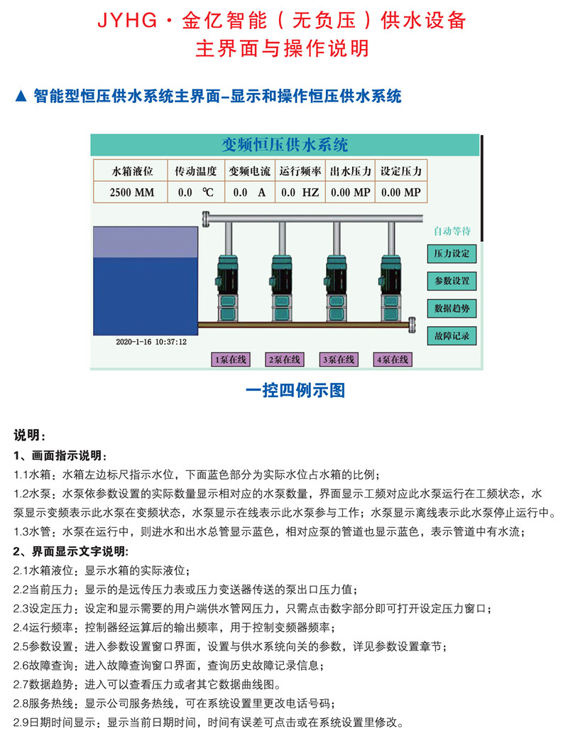 換熱機組的構成及工作原理換熱機組是集成板式換熱器、循環泵、補水泵、電控柜、溫控裝置、各種傳感器、熱量計、溫度計、壓力表、管路和閥1門等于- -體,并組裝在公共底座上的熱交換成套組合裝置。一次側熱源(蒸汽、高溫水等),經過除污器過濾后,進入板式換熱器與二次側循環水進行熱交換,然后返回一次側回水管網。二次側循環水經過除污器過濾、循環泵加壓后,進入板式換熱器與一次側熱源進行熱交換,然后進入二次側供水管...